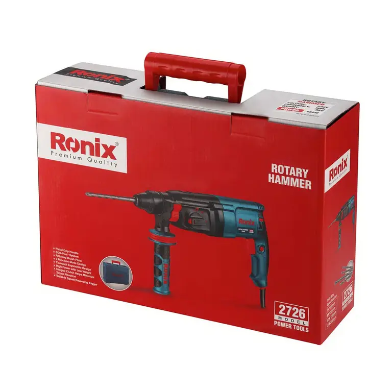 بتنکن 2726 رونیکس، مجهز به موتور قدرتمند 850 وات، گیربکس صنعتی مقاوم و باکیفیت و بدنهای با طراحی ارگونومیک، سبکوزن و مستحکم است. این ابزار با سه حالت عملکرد سوراخکاری، سوراخکاری چکشی و چکشی، انعطافپذیری بالایی در کارهای مختلف ارائه میدهد. این بتنکن مجهز به کلاچ ایمنی پیشرفته است که باعث افزایش ایمنی در حین کار با سطوح مختلف به ویژه سطوح متراکمتر میشود.
