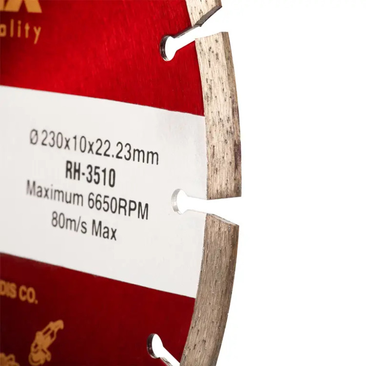 - مجهز به سگمنت بلند با ارتفاع 10 میلیمتر و تکنولوژی نوین در تولید، برای ایجاد شیارهای منظم در تمام سطح سگمنت در جهت کاهش اصطکاک، افزایش سرعت برش و کیفیت یکسان برش از ابتدا تا انتهای ارتفاع سگمنت