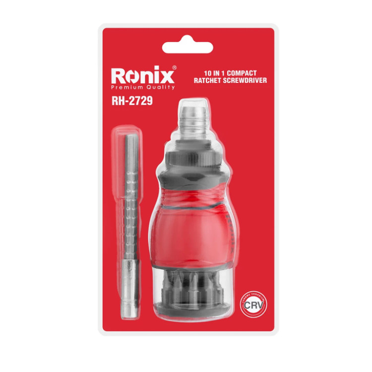 درایو این ابزار از فولاد کروم-وانادیوم ساخته شده و شامل 10 سری پرکاربرد در سایزهای مختلف است که در انتهای دسته قرار دارند تا دسترسی و استفاده از آنها راحت باشد. پیچگوشتی RH-2729 رونیکس گزینهای ایدهآل برای تعمیرات خانگی، کارگاهی و حتی صنعتی محسوب میشود.