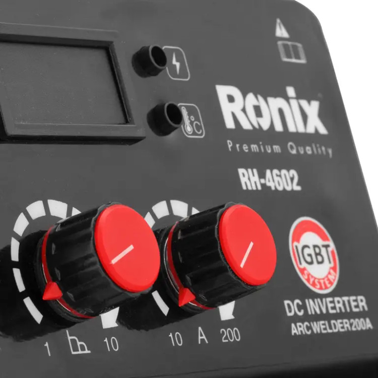 در اینورتر جوشکاری 200 آمپر پاور پلاس 4602-RH رونیکس، در صورت اتصال کوتاه الکترود به قطعهی کار، با قطع جریان خروجی از آسیب به دستگاه جلوگیری میشود. همچنین، اگر جریان عبوری بیشتر از حد استاندارد باشد، مدار محافظ جریانی موجب اصلاح و یا قطع جریان خروجی میشود. در این دستگاه اینورتر، با استفاده از مقاومتهای حرارتی دقیق، میزان دمای عناصر قدرت بررسی شده و در صورت افزایش بیش از حد دما، جریان خروجی قطع میشود تا اینورتر خنک شود.
