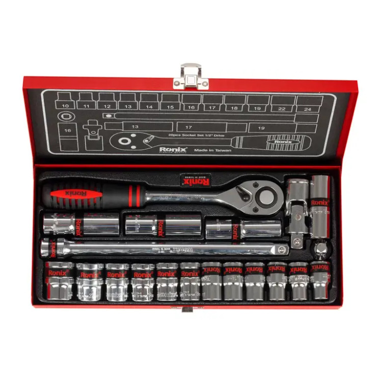 مجموعه بکس ۲۰ عددی رونیکس مدل RH-2620 و ساخت تایوان انتخاب ایدهآلی برای کاربران حرفهای و صنایع مختلف مانند مکانیک و تعمیرات است. این جعبه بکس 20 پارچه رونیکس از فولاد کروم وانادیوم سختکاری شده ساخته شده و دارای روکش آینهای براق است که آن را در برابر زنگزدگی و خوردگی مقاوم میسازد.